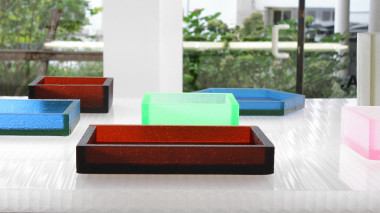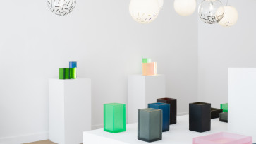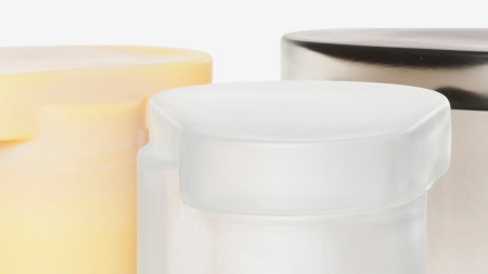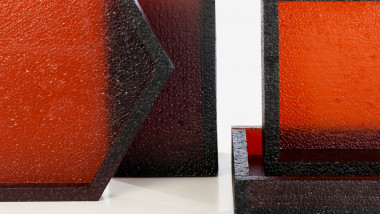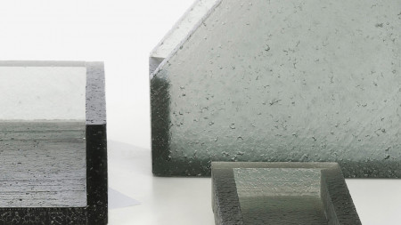 The Block series are made using a glass casting method inspired by the well-known lost-wax technique. Instead of using wax (cast from a mould, itself cast off a master piece), each piece is made and assembled by hand using expanded polystyrene (eps) board as base material. Plaster moulds are made from these eps forms, and then burnt. Hot glass is then transferred into these moulds. Subsequently, each piece resulting from this process is unique. Such a technique allows to cast the eps in glass, whilst retaining the exceptionally fine details that form the surface texture of the original eps board, itself originating from another moulding process of the chemical polymer industry. Read more