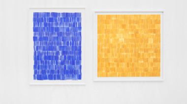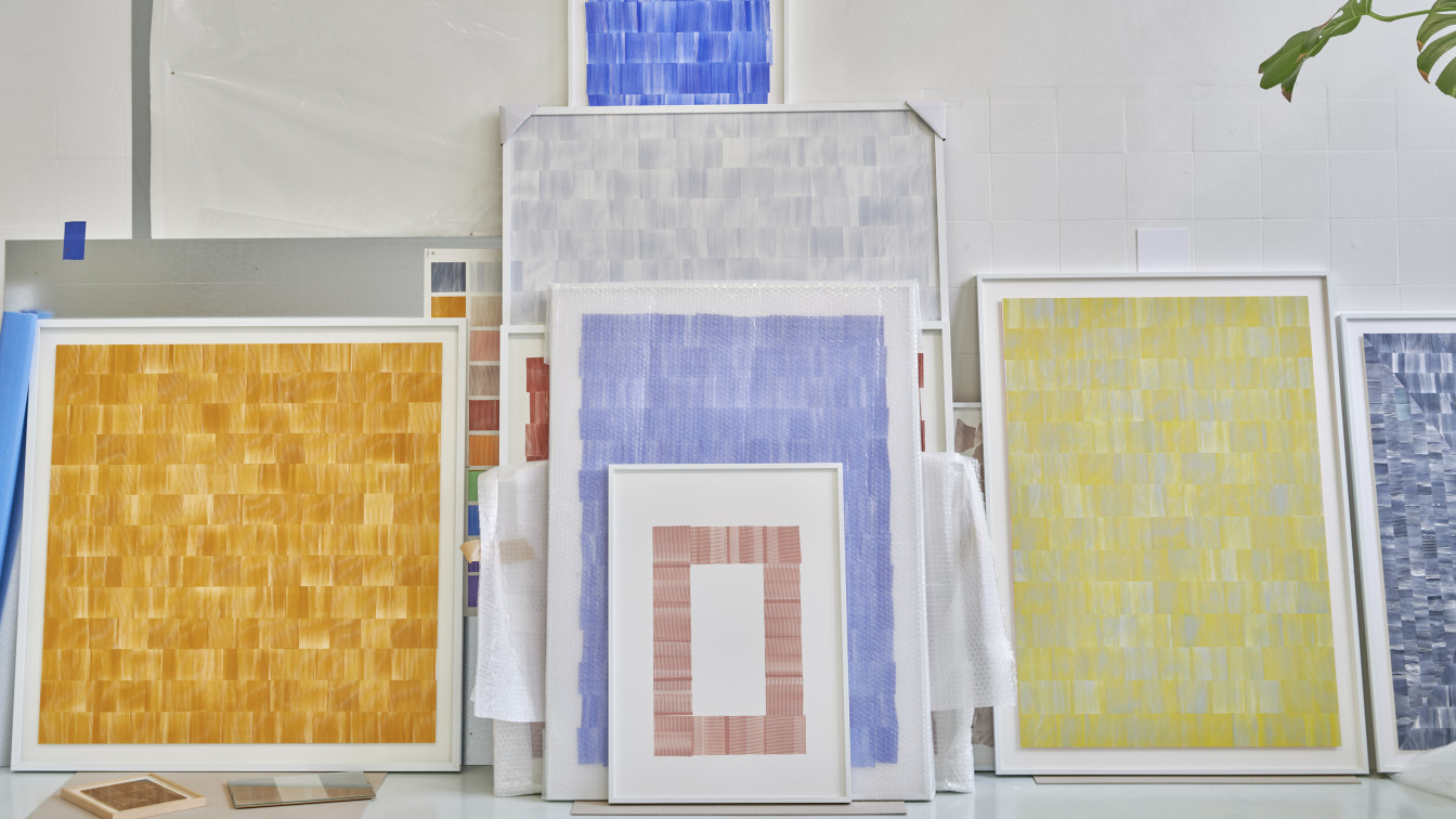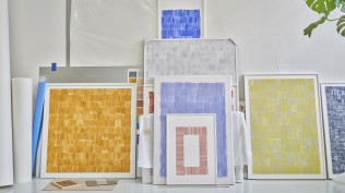 Tim Mastik’s work echoes his obsession with shape, repetition and material by researching the endless options of handmade print techniques. By deconstructing his designs, playing with rhythm, symmetry and asymmetry, he creates an unexpected dynamic between color and shape. Geometry and minimalism often form the foundation of his designs, characterised by seemingly simplistic shapes and great attention to detail. The creative process is essential as his experiments on materiality play a key role in establishing a personal texture. Using selfmade tools to create his series, using the ink such that every applied part is unique as a dialogue between precision and imperfection, where the material properties of the tools stand central to the creation process, his work methods imprints an often-unexpected variation to an otherwise perfect regularity, an individual interpretation of béton brut on paper and as iterative studies of mass and shape driven by repetition, subtraction, overlays, and framing. It is both uniqueness and an unfolding of a sequence which characterises Tim’s works, singular and endless at the same time, his experiments with printing techniques providing him with ever new shapes and structures.