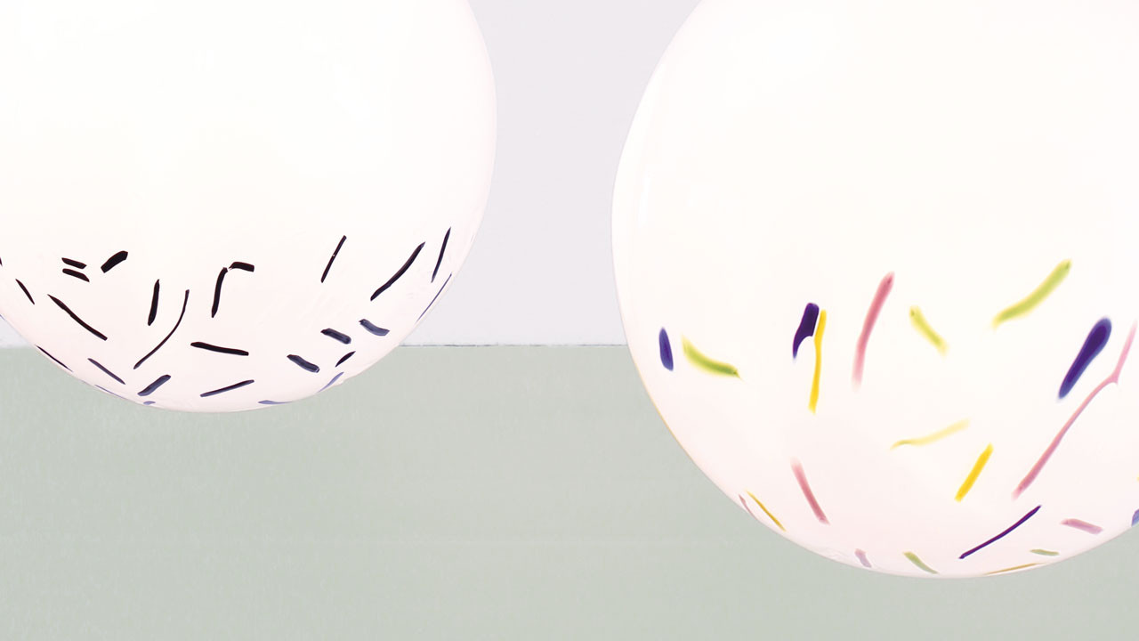 Spot evolved from the idea of reinterpreting the classic white glass globe into a playful, colourful and graphic new suspension light. During the glassblowing process, transparent and white spheres are rolled onto thin and small glass filaments of various colour tones, which stick to the sphere. The glass is then blown into a conventional wooden mould and the filaments stretch, creating random graphic patterns as well as optical and lighting effects. Spot come in four different finishes, with complete light fitting, adjustable in length, including a stainless steel cable system and ceiling rose.
