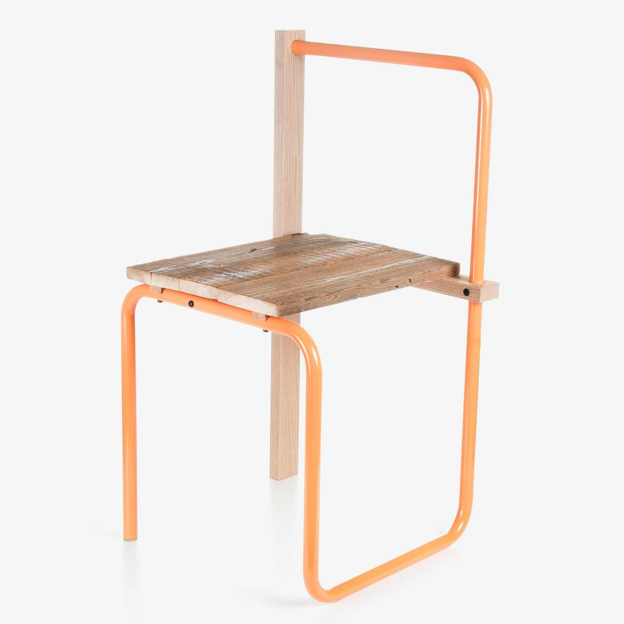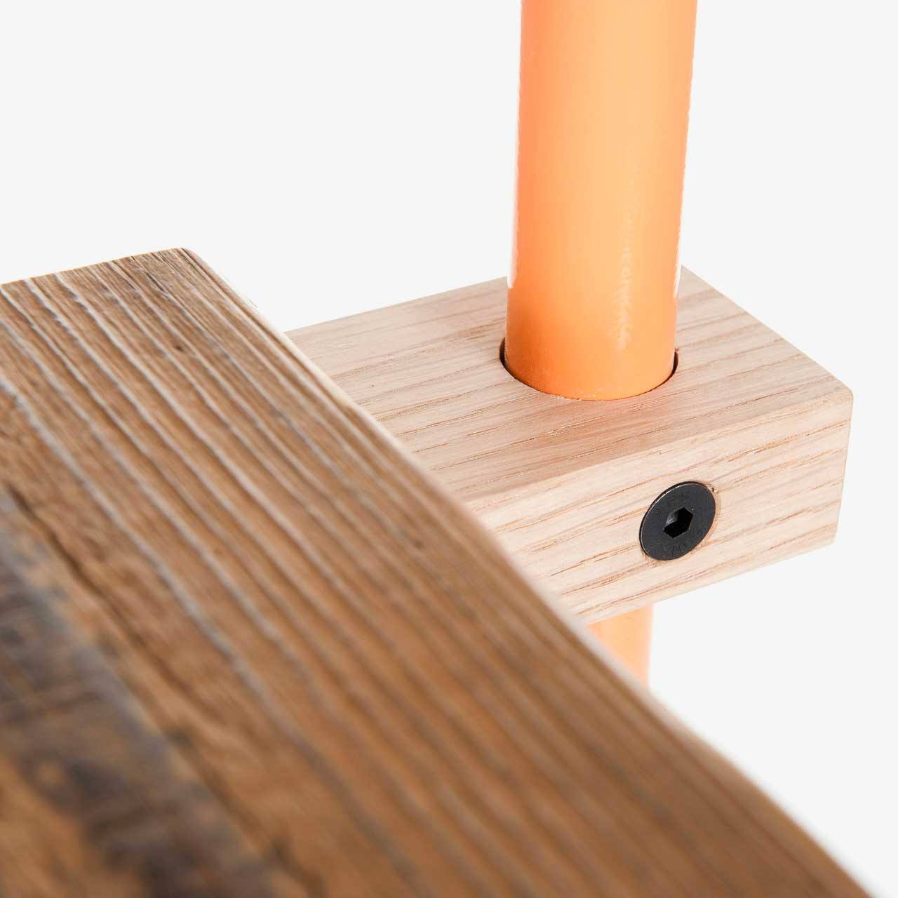 • powder coated steel tube, solid ash, reclaimed Victorian ceiling board