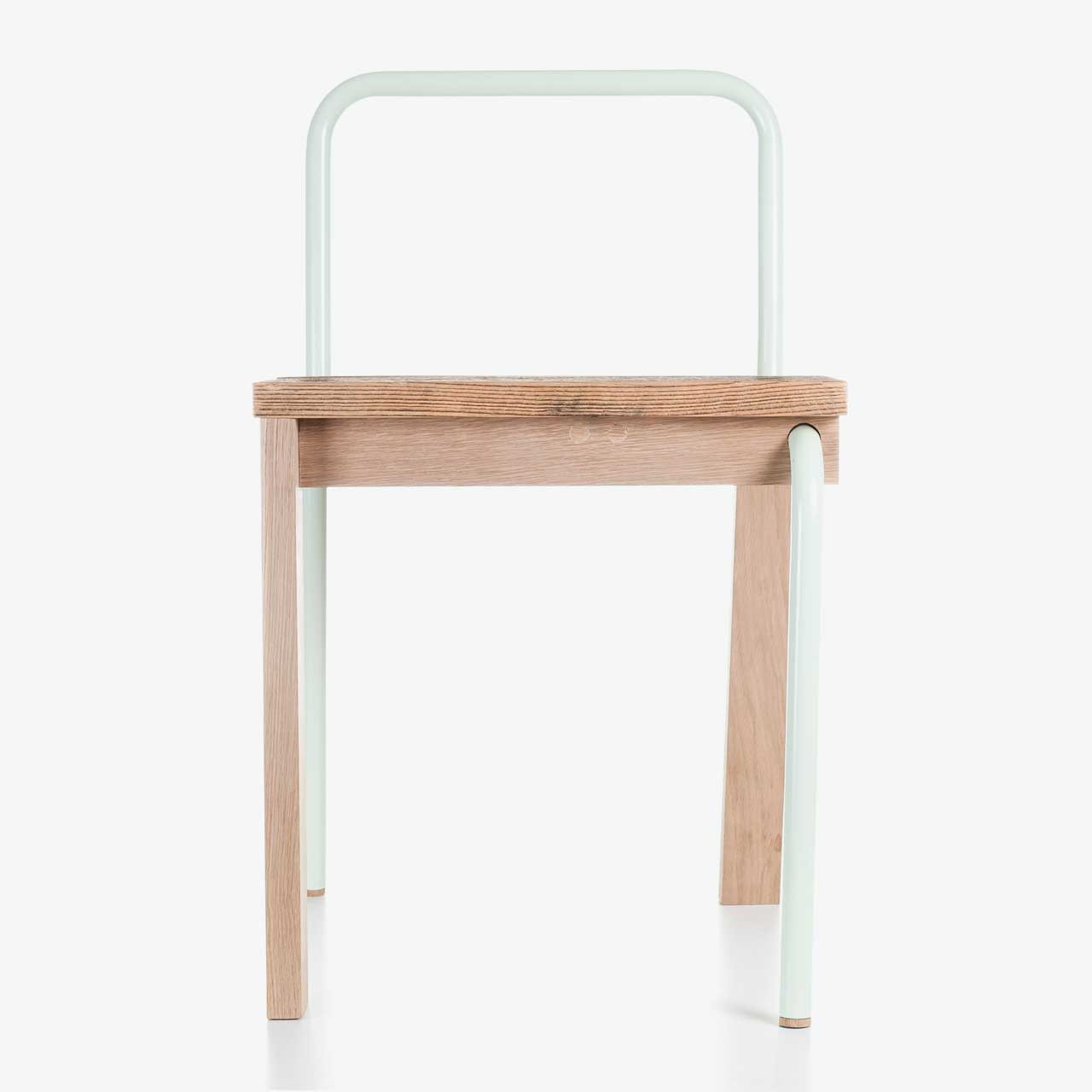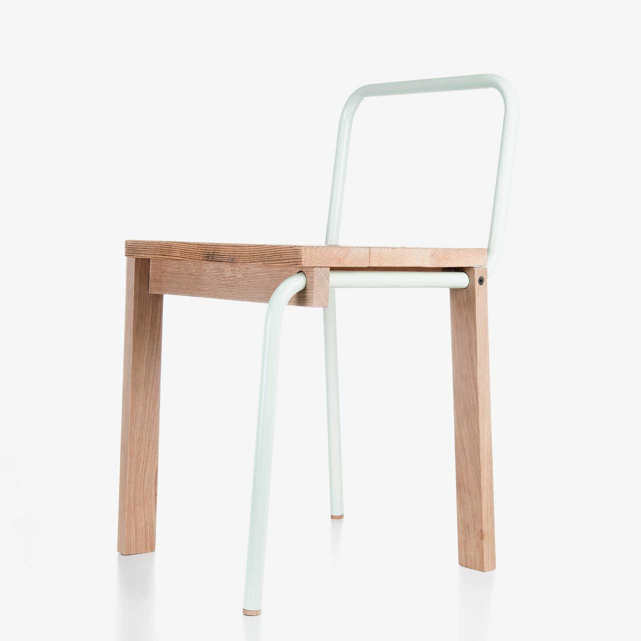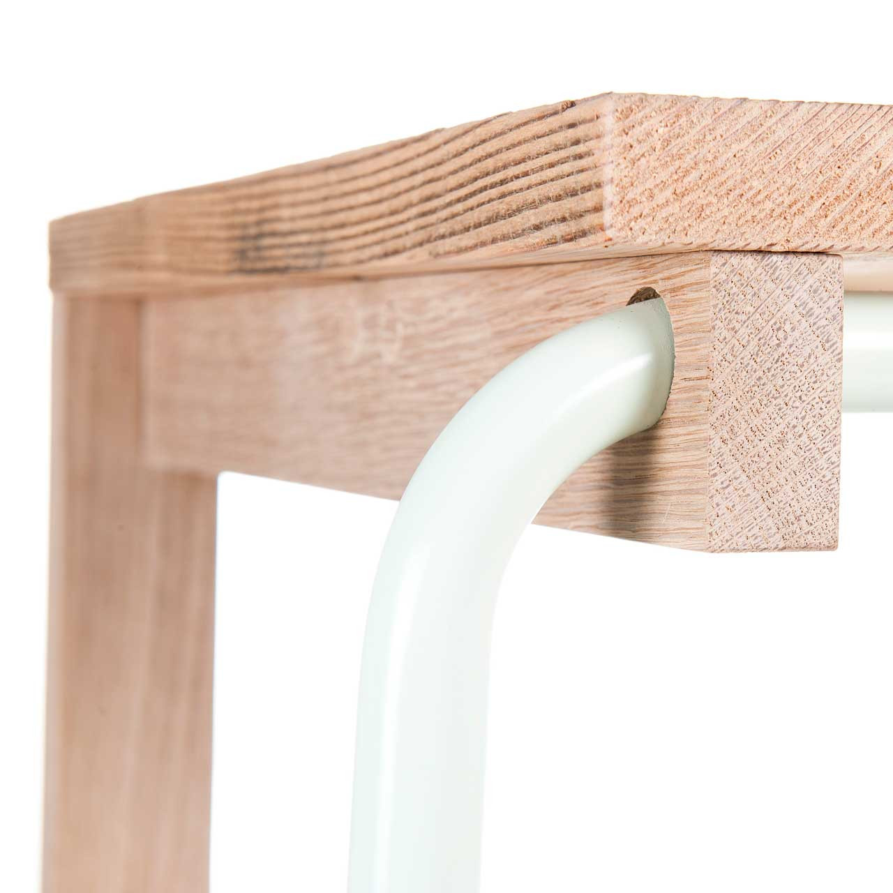 • powder coated steel tube, solid ash, reclaimed Victorian ceiling board