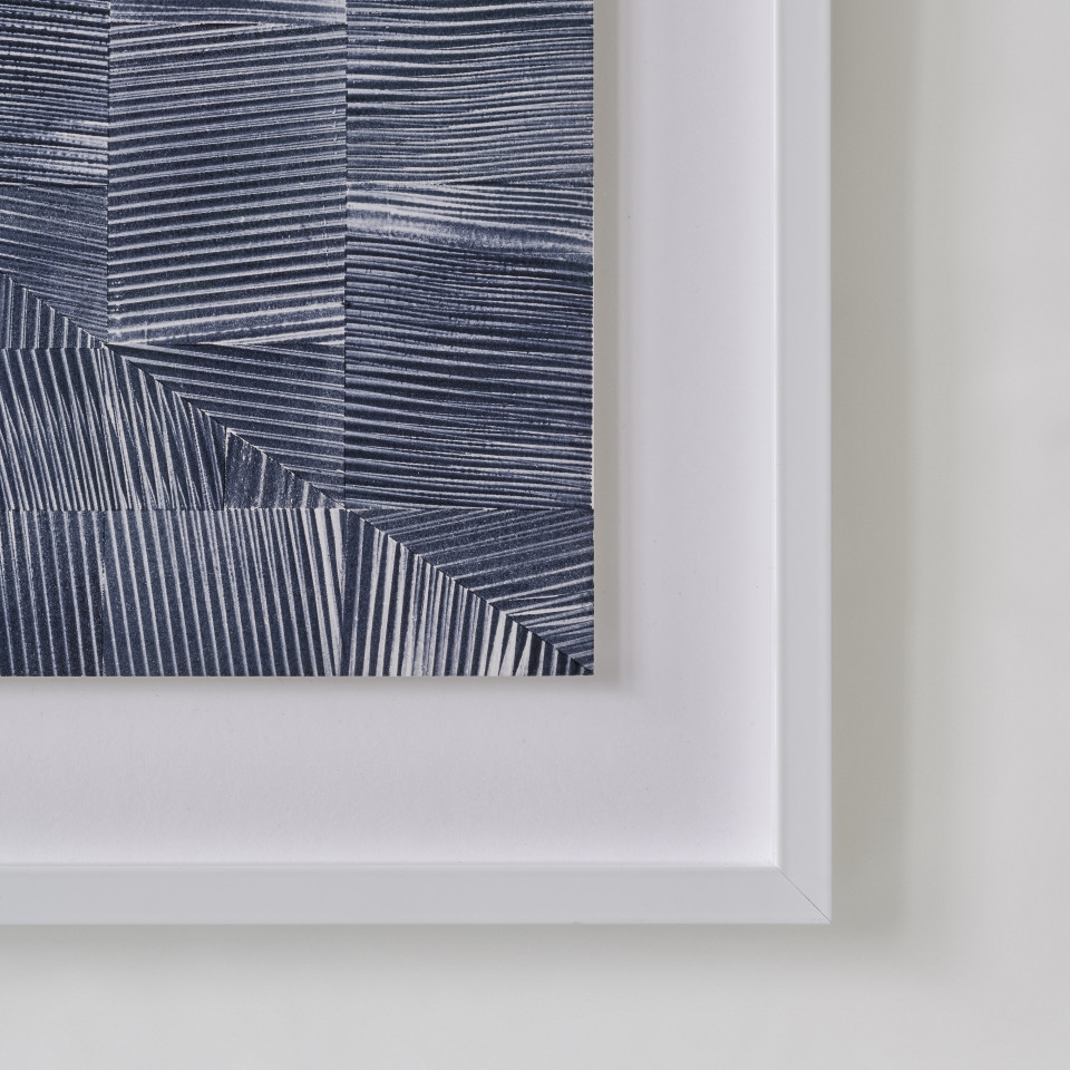 • glass, wooden frame, multiple reliefprint & ink