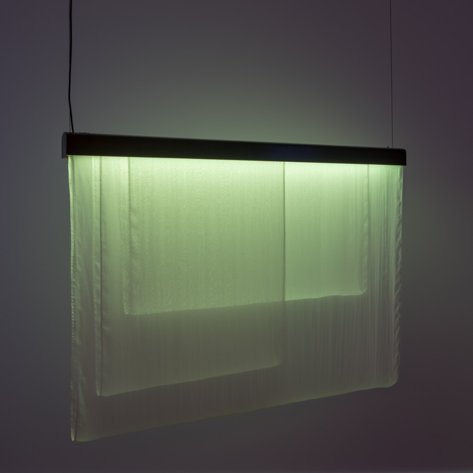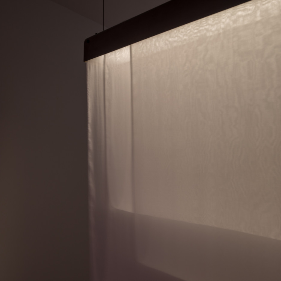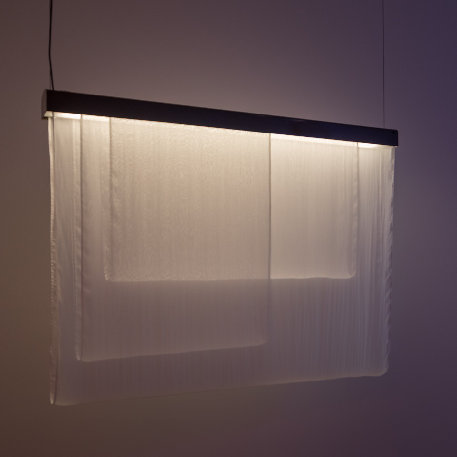 • silk, patinated brass, aluminium, LED, light diffuser, electronic components, steelwire