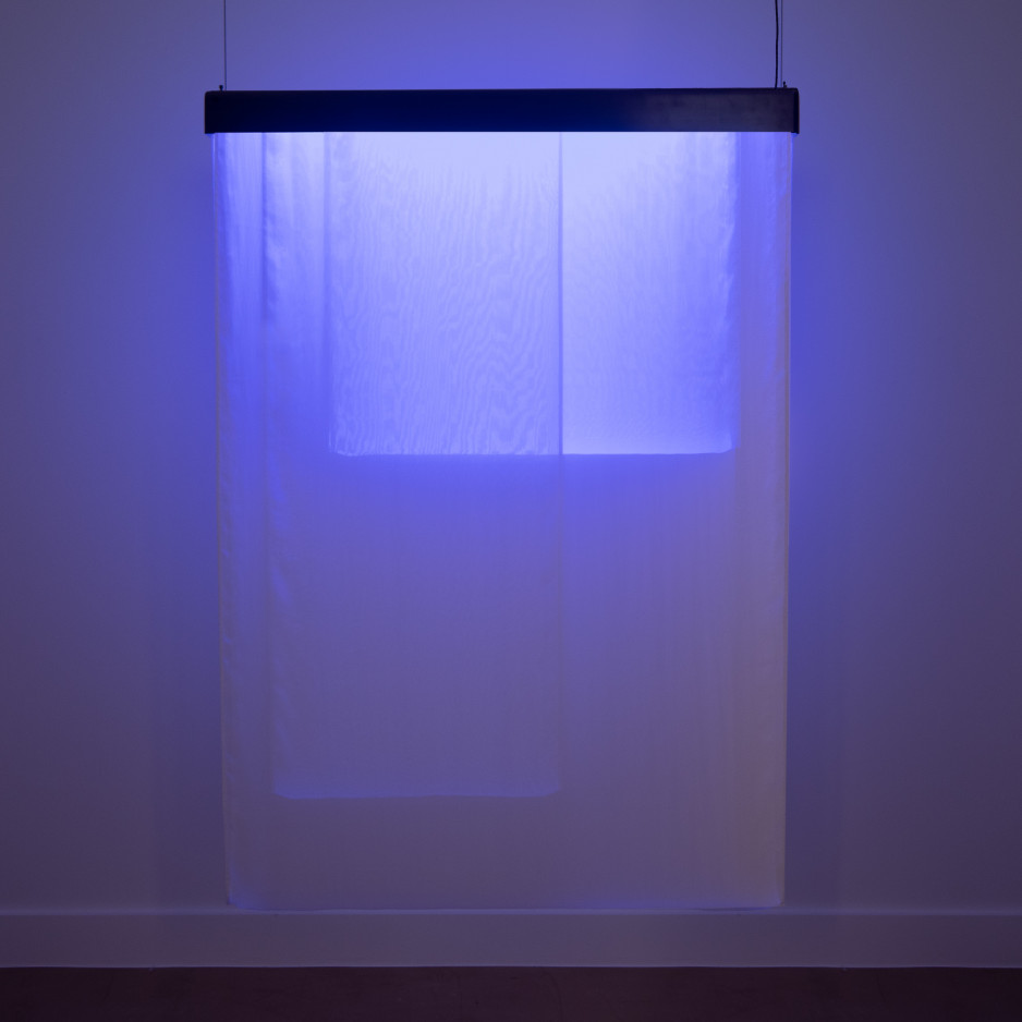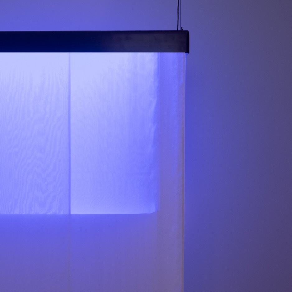 • silk, patinated brass, aluminium, LED, light diffuser, electronic components, steelwire