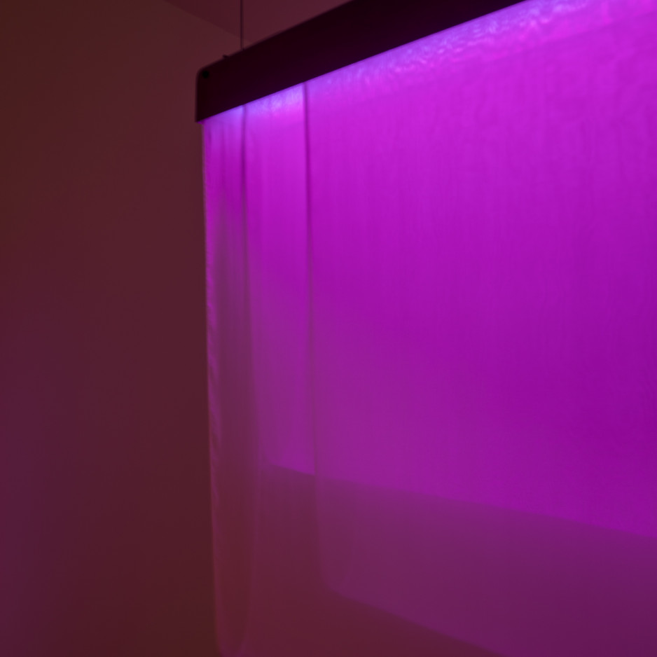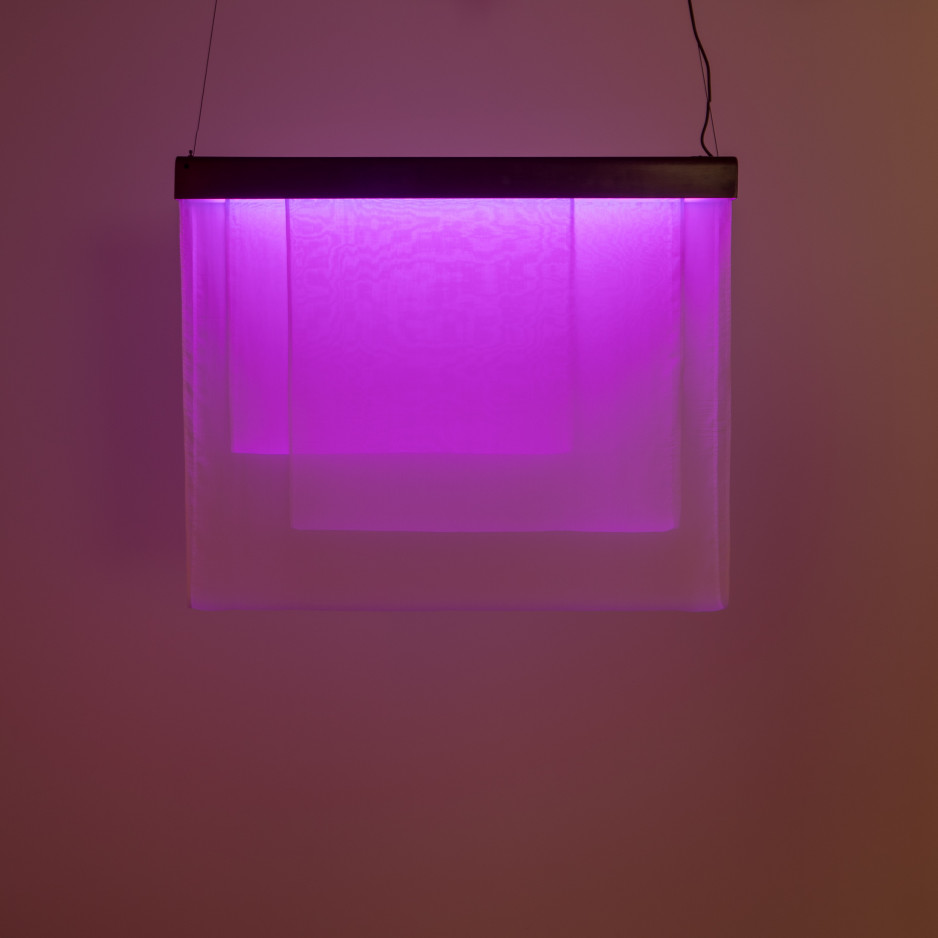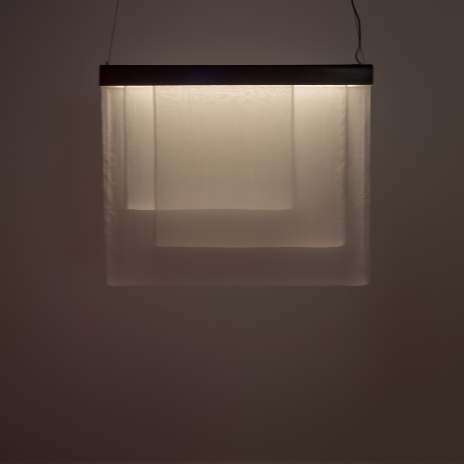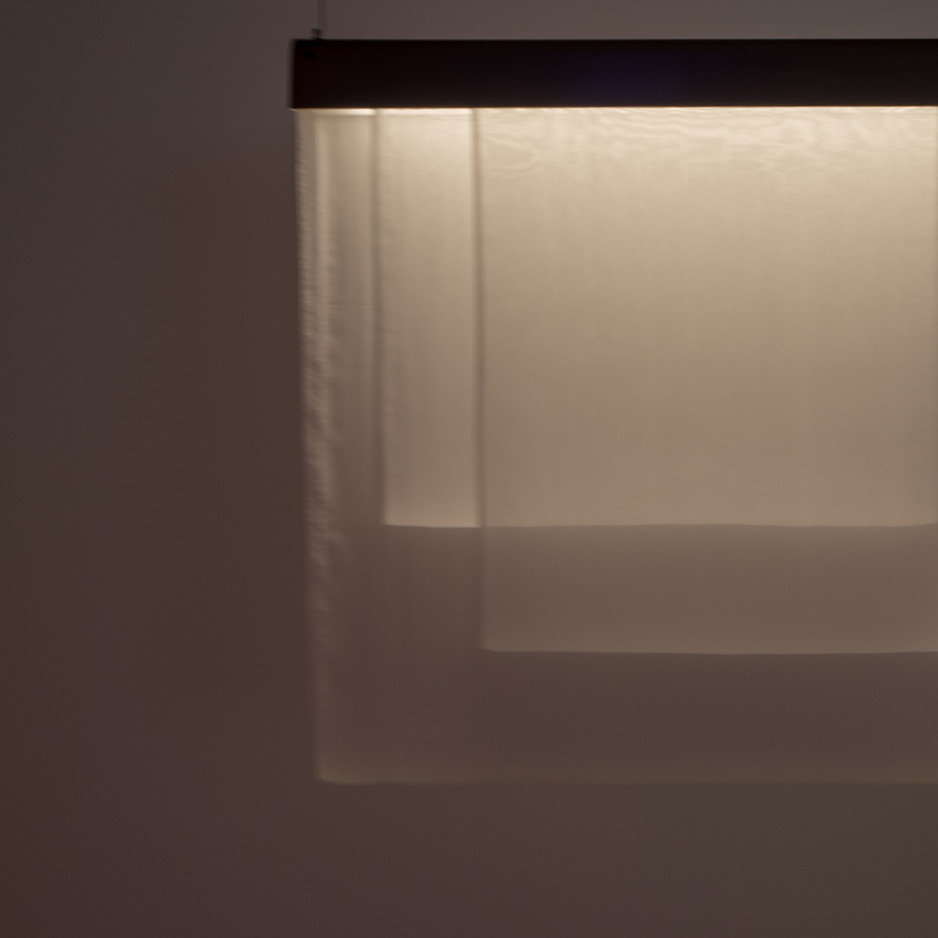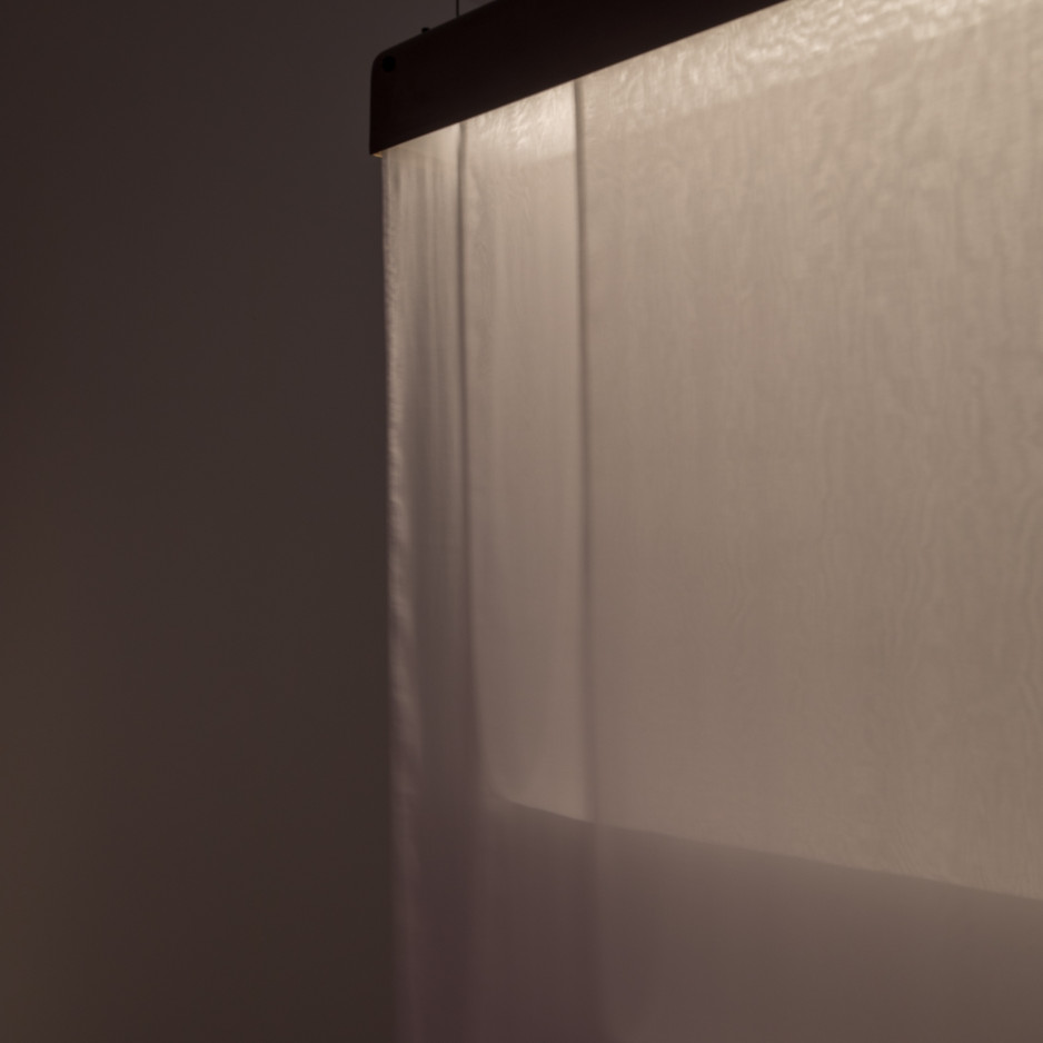 • silk, patinated brass, aluminium, LED, light diffuser, electronic components, steelwire