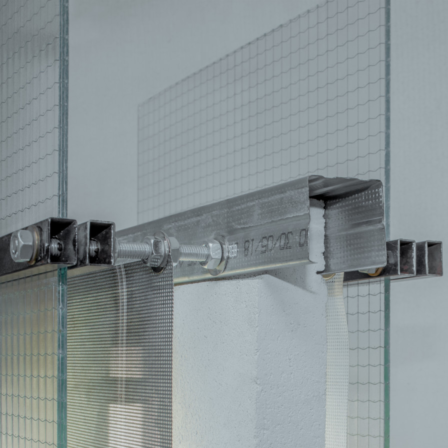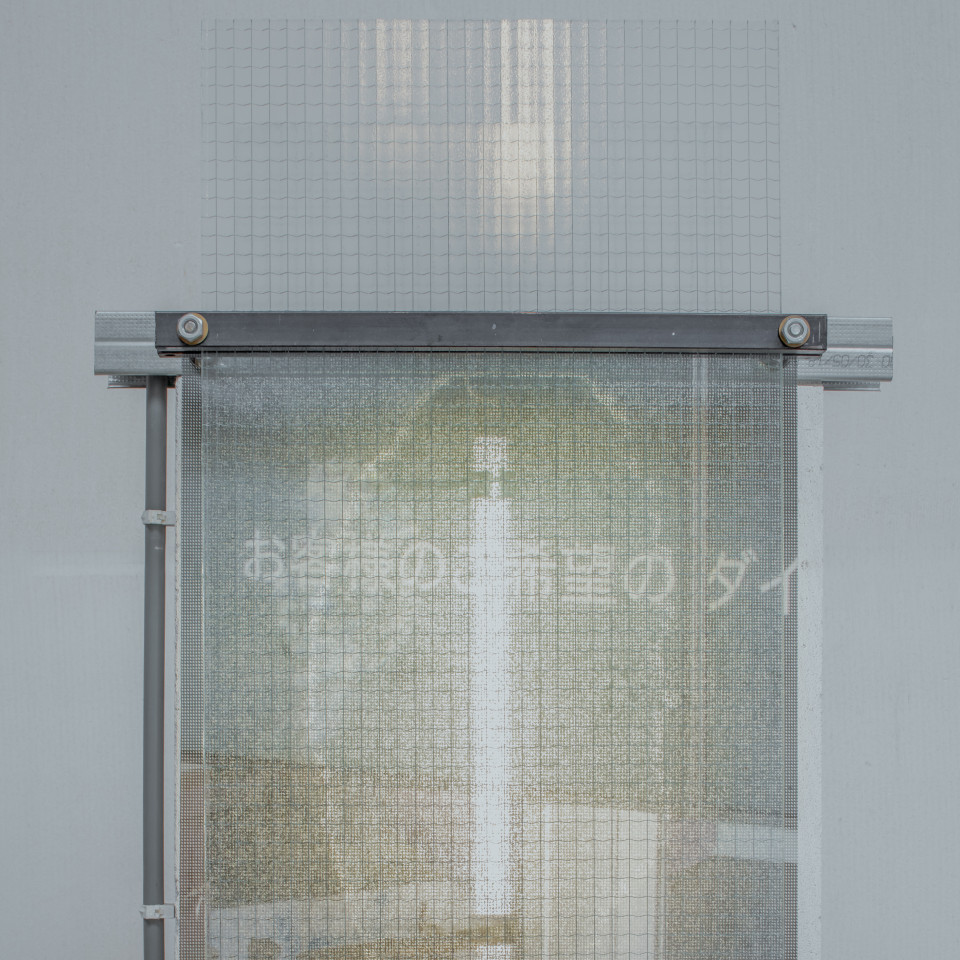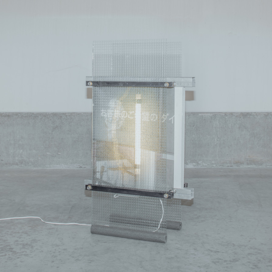 • galvanised steel, armed glass, bolts, bloc ytong, printed pvc sheet, foam, neon tube